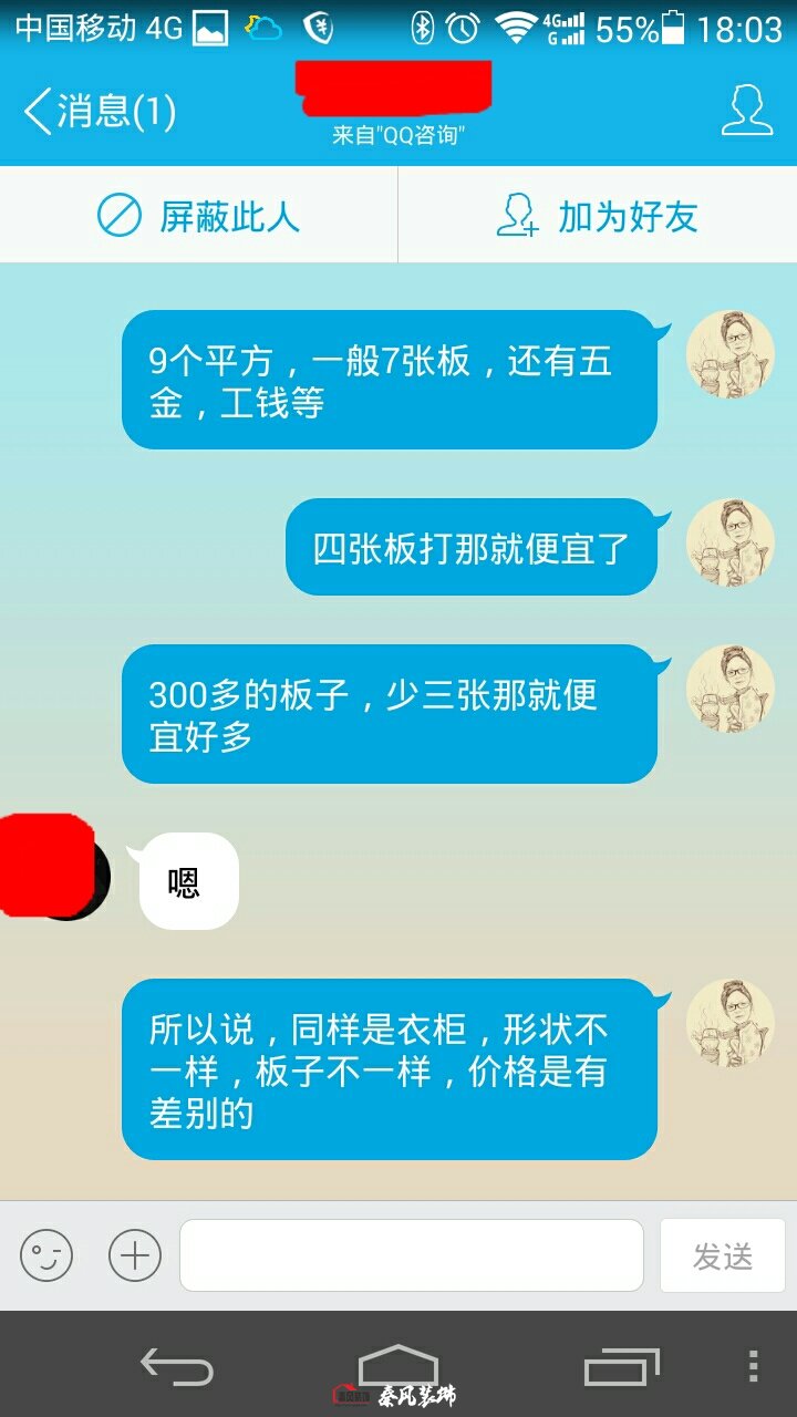 我說:我們是用七張板做的,(3000多是用千年舟或莫干山E1級的板子[差板子相差幾百塊錢],用七張板做,衣柜內(nèi)在結(jié)構(gòu)相對合理復(fù)雜。四張板也可以做,就是有其外形,而內(nèi)在結(jié)構(gòu)簡單,再加上工錢和衣柜五金、柜門,差不多就是3000來塊錢)。